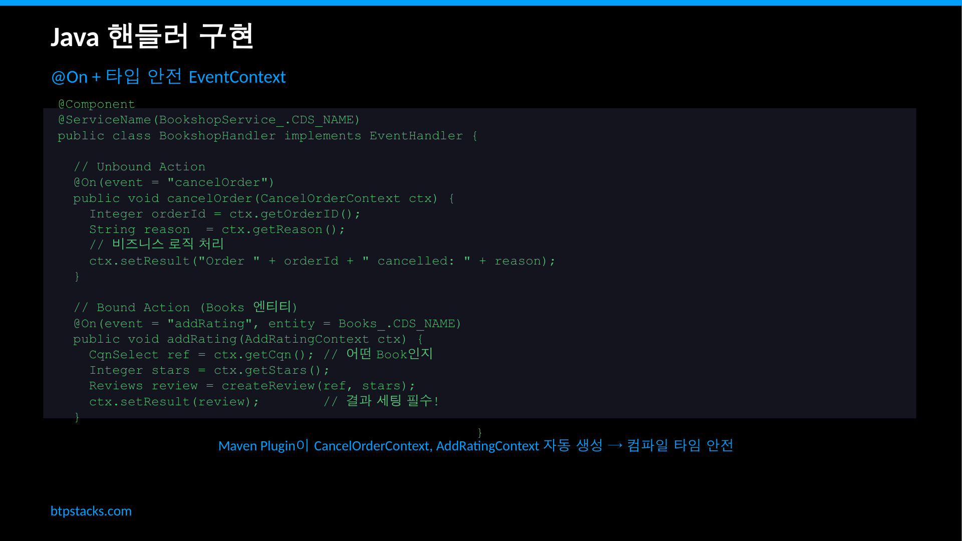 - Maven Plugin으로 생성된 타입 안전 EventContext를 활용할 수 있다
